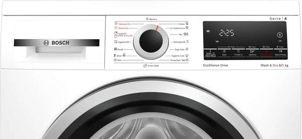 Станция Bosch WDS28460ME — это полноразмерная стиральная машина с сушкой, которая идеально подойдет для больших семей. Она имеет стильный и современный дизайн, выполненный в белом цвете, что делает ее визуально привлекательной и универсальной для любого интерьера. Широкая дверца с левым расположением петель обеспечивает удобство загрузки и выгрузки белья. Машина оснащена многофункциональным LED-дисплеем, который позволяет легко контролировать все процессы и выбирать нужные режимы работы.