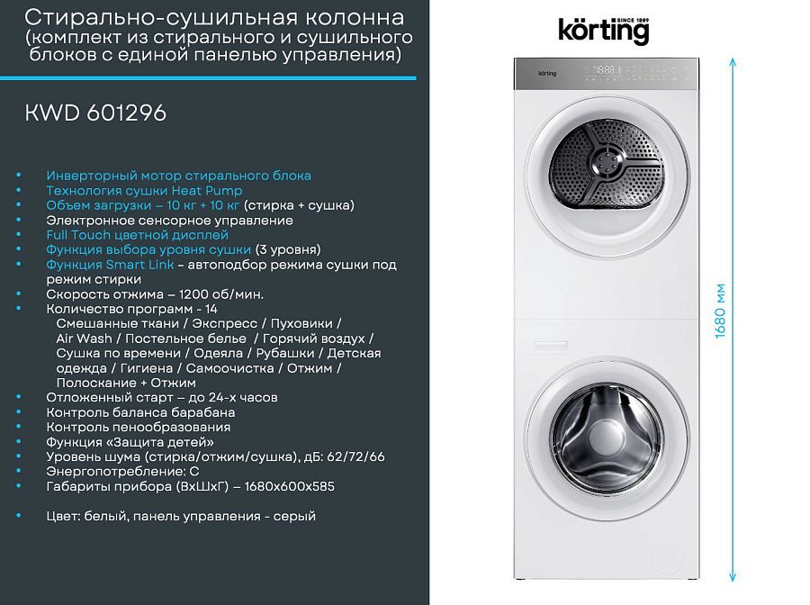 - Инверторный мотор с прямым приводом, контроль баланса и автодозирование гарантируют тихую, эффективную и безаварийную работу.
