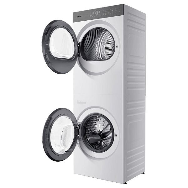 Высокая и эффектная белая техника создана для тех, кто ценит аккуратный внешний вид и продуманную эргономику. Высота 168 см делает ее визуально стройной и удобной для загрузки, а продуманная фронтальная посадка обеспечивает простой доступ к большой дверце, открывающейся на 135 градусов. Правая сторона корпуса минималистична, панель управления выполнена в виде цветного Full Touch дисплея с сенсорными клавишами — управление интуитивно, понятные иконки и плавная реакция дают ощущение премиального устройства. Прямой привод и инверторный мотор расположены в основании, что уменьшает вибрации и продлевает срок службы, одновременно снижая шум при работе: 62 дБ в процессе стирки и 72 дБ при интенсивном отжиме. Барабан с сотовой структурой защищает волокна ткани, а поверхность из нержавеющей стали и полимерный бак сочетают прочность с коррозионной устойчивостью.