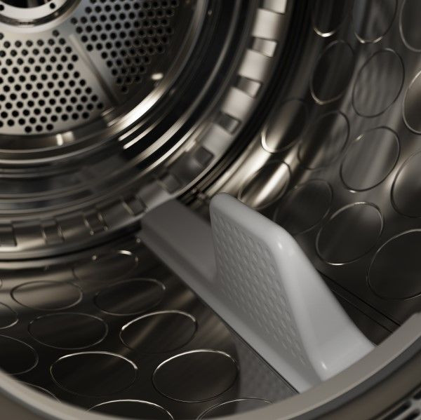Внутреннее устройство ориентировано на деликатную и эффективную работу: вместительный барабан Soft Drum из нержавеющей стали объемом 145 л и уникальные лопасти Butterfly гарантируют бережное обращение с тканями и равномерный прогрев. Бесщеточный мотор постоянного тока BLDC обеспечивает тихую и долговечную работу, а реверсивное вращение барабана предотвращает спутывание и уменьшает складки. Подсветка бака упрощает загрузку, а угол открытия дверцы в 180 градусов и компактные размеры (850x596x636 мм) повышают удобство обслуживания.
