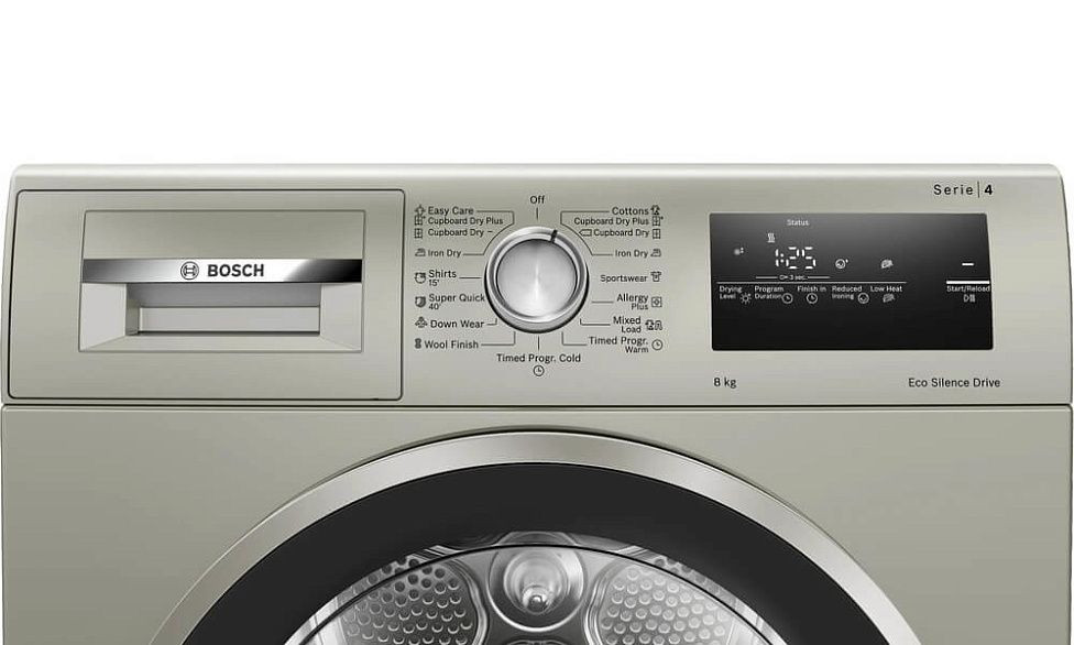 Устройство предлагает широкий выбор программ для разных типов материалов: 15 стандартных циклов включая хлопок (в шкаф/под утюг), синтетику, деликатные изделия, шерсть, джинсы, постельное белье, спортивную одежду и специальные режимы для рубашек, освежения, холодного воздуха и экспресс-сушки. Дополнительные опции охватывают интенсивную и эко-программы, работу с пуховыми изделиями, мокрой отделкой WetClean finish, режимы для детской одежды и супер тихую работу. Для удобства имеется функция ExtraDry, выбор степени высушивания, режим «в шкаф», «под утюг» и запоминание до 6 пользовательских настроек — MyFavourite.