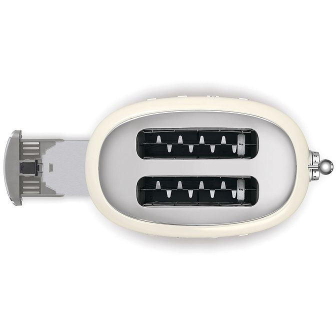 В корпусе, выдержанном в стиле 50-х годов, этот прибор становится не просто бытовым аксессуаром, а самостоятельным интерьерным элементом. Кремовый оттенок основания в сочетании с полированной хромированной отделкой верхней панели и рычага придают изделию благородство и визуальную лёгкость, благодаря чему аппарат эффектно смотрится на рабочей поверхности. Материал поддона для крошек — полированная нержавеющая сталь, сам корпус собран с применением качественной нержавеющей стали, что обеспечивает долговременную службу и простоту ухода. Фронтальная панель выполнена с подсветкой элементов управления, поворотный переключатель освещается, а кнопки снабжены деликатной подсветкой для удобства в условиях приглушённого света.