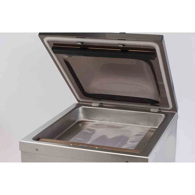 Техническая начинка ориентирована на профессиональный результат: однокамерная система с периметрическим всасыванием воздуха и встроенным манометром гарантирует стабильное и равномерное удаление воздуха; регулировка мощности насоса позволяет подобрать оптимальный уровень вакуума для разных типов продуктов — от сухих до влажных. Производительность насоса составляет 77 л/мин, интенсивность откачки — 4.32 м3/ч, что обеспечивает быстрое и эффективное удаление воздуха даже при работе с большими объемами. Электронный контроль температуры запаивания и длина сварочной планки 290 мм дают ровный, надежный шов; встроенный импульсный режим и опция двойного сварного шва повышают герметичность упаковки, а режим «вакуумирование жидкостей» расширяет функционал для приготовления и хранения маринадов, соусов и бульонов.