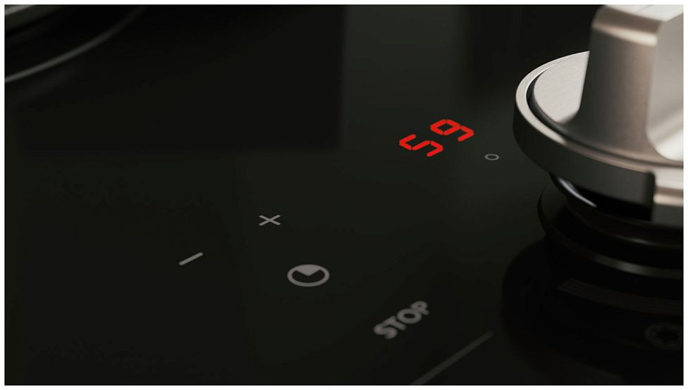 Управление механическое, выполнено поворотными переключателями, расположенными спереди для удобного доступа и контроля пламени. Электроподжиг облегчает розжиг и исключает необходимость дополнительных приборов, а газконтроль обеспечивает автоматическую блокировку подачи топлива при затухании конфорки, повышая безопасность эксплуатации. На панели нет дисплея и таймера, зато предусмотрена индикация остаточного тепла, позволяющая оценить температуру поверхности после приготовления. Встроенные особые конфорки из материала Keradur™ ускоряют разогрев и отличаются долговечностью; одна двухконтурная зона дает возможность гибко регулировать интенсивность нагрева в зависимости от диаметра посуды.