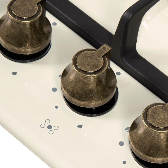 Материал поверхности панели — эмаль, что обеспечивает легкую очистку и долгий срок службы. Решетки выполнены из чугуна — материала, отличающегося высокой прочностью и долговечностью. Панель конфорок изготовлена из металла, что гарантирует ее надежность и долгий срок службы.