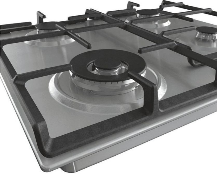 - Четыре конфорки, включая WOK и двухконтурную горелку с тройным рядом пламени, позволяют готовить быстро и равномерно.