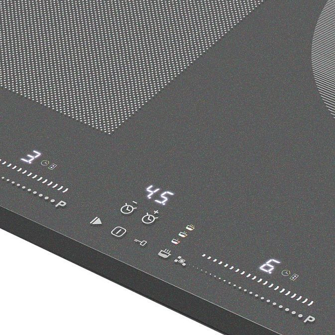 Варочная панель оснащена четырьмя конфорками, которые обеспечивают быстрый нагрев и равномерное распределение тепла. Каждая из них имеет свою мощность, что позволяет выбрать оптимальный режим для приготовления различных блюд. Дополнительно, панель оснащена функциями распознавания наличия и размера посуды, что позволяет экономить энергию и увеличивает безопасность использования.
