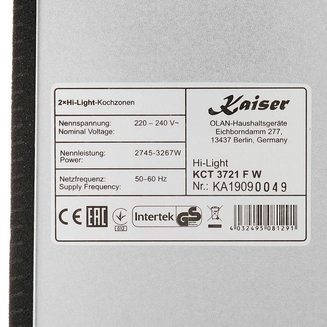 Стеклокерамическая панель Kaiser KCT 3721 F W
