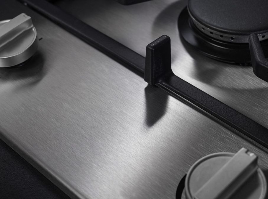 Рабочая панель оснащена пятью горелками, включая специализированную WOK-конфорку и Super Vario Wok с двойной короной и раздельным управлением контуров пламени, что дает максимум гибкости при интенсивном нагреве. Также представлены четыре гибридные конфорки А+ и многоуровневая конфигурация мощности: от минимального огня до сильного горения с бесступенчатой регулировкой, что позволяет точно контролировать процесс приготовления. Латунные горелки с основой из Keradur® и покрытие POLIANT делают поверхность более стойкой к загрязнениям и облегчают очистку; крышки конфорок эмалированные, их можно аккуратно снимать при мытье.