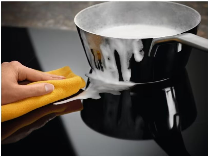 Управление реализовано через сенсорные переключатели и пять цифровых дисплеев, которые отображают уровень мощности, индикацию остаточного тепла и таймер. Встроенные опции включают таймер до 99 минут с режимом приготовления яиц, Pause Stop&Go для временной приостановки процесса, функцию плавления и возможность восстановления настроек. Поддержка Hob2Hood синхронизирует работу с совместимой вытяжкой, а отключение звуковых сигналов позволяет избежать лишнего шума.
