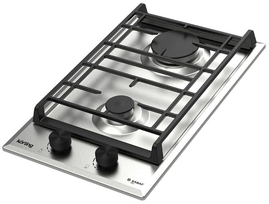 Рабочая зона состоит из двух конфорок SABAF, одна из которых оснащена двухконтурной технологией для гибкой регулировки нагрева и возможности расширения зоны под размеры посуды. Особая WOK-конфорка обеспечивает интенсивное пламя для быстрого обжаривания, а чугунные решетки гарантируют устойчивость посуды и долговечность при регулярном использовании. Панель конфорок выполнена из эмалированного металла, что облегчает очистку зон вокруг горелок и сохраняет аккуратный внешний вид подолгу.