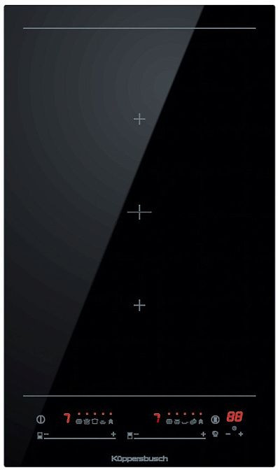 Этот компактный прибор сочетает в себе сдержанную эстетику и продуманную функциональность: черная стеклокерамическая поверхность OptiGlass плавно интегрируется в любую кухонную композицию и подходит для встраивания вровень со столешницей. Тонкая обработка края без рамки и дизайн DualDesign подчеркивают минималистичный профиль, а металлические профили для накладного монтажа предлагаются отдельно для тех, кто предпочитает иной способ установки. Небольшая ширина всего 29,8 см и глубина 51,8 см делают его оптимальным решением для ограниченных по площади зон, но при этом устройство сохраняет все преимущества полноразмерных моделей: две индукционные конфорки с зоной расширения и возможностью объединения образуют гибкую Flex Zone, позволяя разместить посуду нестандартных размеров или объединить нагревательные секции для крупных емкостей.