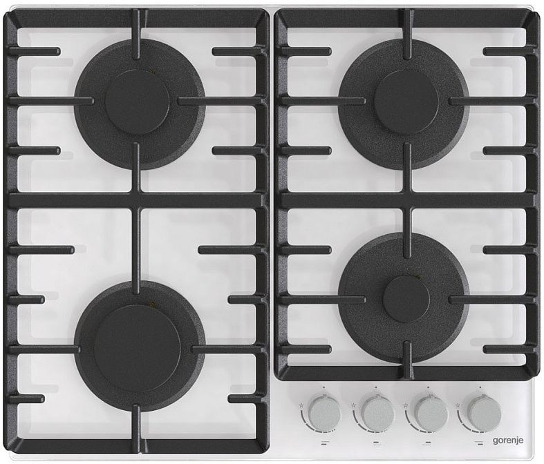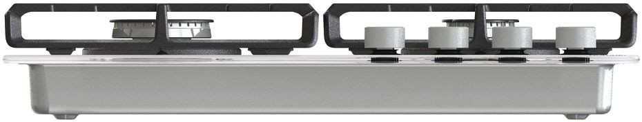 Современная варочная поверхность с белой закаленной стеклянной вставкой создает лаконичный и светлый акцент в интерьере кухни. Скошенные края подчеркивают аккуратную линию и облегчают уход за столешницей, а отсутствие рамки обеспечивает максимально плавный переход к рабочей поверхности. Чугунные решетки придают надежность и устойчивость посуде, их конфигурация рассчитана на комфортное размещение кастрюль и сковород с различным диаметром дна. Передняя панель с поворотными механическими переключателями вынесена вперед для удобного управления и быстрого доступа в процессе приготовления.