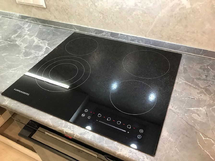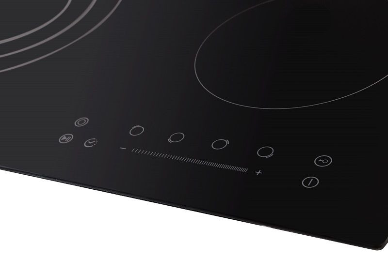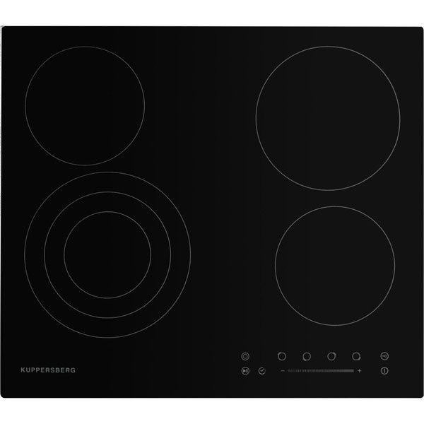 Варочная поверхность KUPPERSBERG ECS 603 оснащена четырьмя конфорками, одна из которых имеет три радиуса действия. Таким образом, на неё можно ставить посуду большого или маленького диаметра, и расход электроэнергии будет зависеть от площади подогрева. Она встраивается независимо, для неё потребуется ниша стандартных габаритов 56x50. Панель управления располагается спереди, кнопки сенсорные, есть защита от случайного нажатия. Звуковой таймер подскажет, когда цикл готовки будет окончен. Конфорки имеют индикацию остаточного тепла. Стеклокерамическая поверхность легко моется при помощи неабразивных средств. Чёрный цвет смотрится элегантно и универсально вписывается в дизайн любой кухни. Для безопасности работы устройства предусмотрено защитное отключение, которое сработает в случае внезапного отключения электроэнергии.