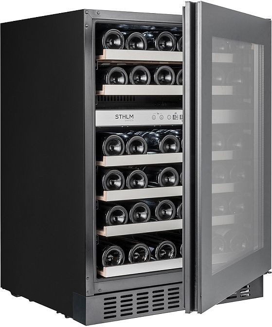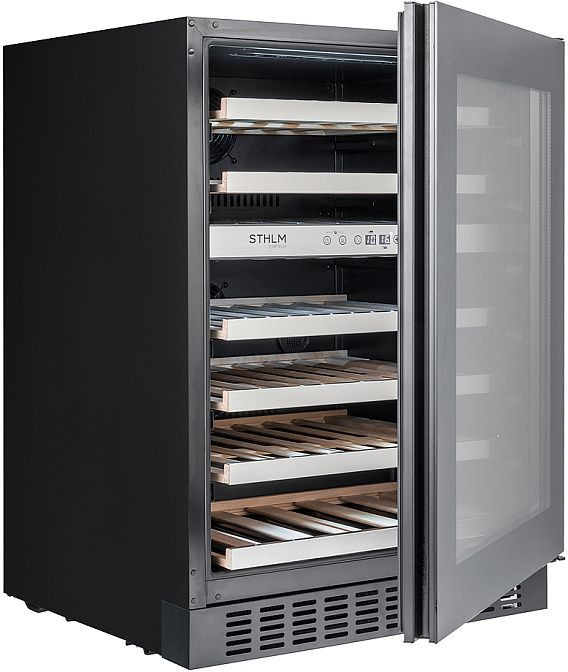 Практичность выражена в деталях: перевешиваемые двери открываются вправо при необходимости перенастройки, стеклянная фронтальная секция сохраняет вид коллекции, а выдвижные полки упрощают инвентаризацию бутылок. Лаконичное управление, стабильная работа компрессора и надежные материалы отделки делают агрегат удобным для длительного хранения и демонстрации, сочетая эстетику и инженерную функциональность в одном корпусе.