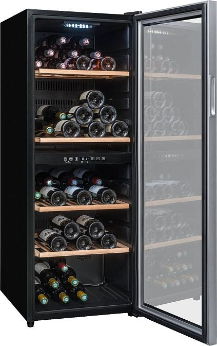 Винный холодильник Climadiff CD90B1 оснащен двумя температурными зонами, каждая из которых может поддерживать температуру от +5 до +20 градусов Цельсия. Это позволяет вам хранить разные виды вина при оптимальных для них температурах. Дверь устройства изготовлена из стекла и стали, при этом стекло защищено от УФ-лучей, что предотвращает вредное воздействие солнечного света на вино.