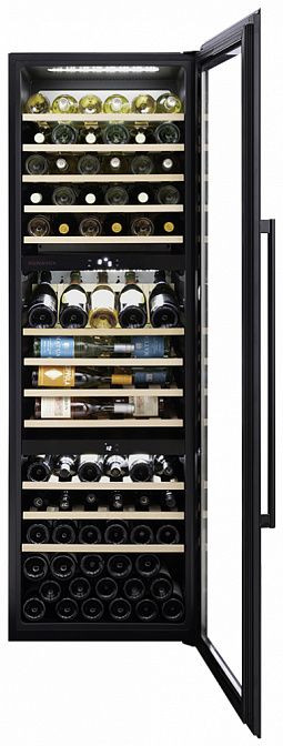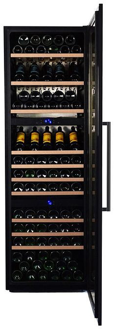 Особенностью данной модели является мультитемпературный режим. Благодаря трем температурным зонам, можно одновременно хранить разные виды вина при оптимальной температуре. Управлять температурой можно с помощью сенсорного панельного дисплея, расположенного внутри камеры. Цифровой термометр позволяет контролировать и поддерживать нужный температурный режим.
