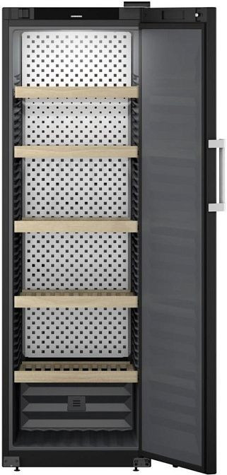 Внутреннее пространство рассчитано на 229 бутылок благодаря общему объему 478 литров и одной температурной зоне с диапазоном 5-20 °C, что делает агрегат идеальным для выдержки и хранения вин при стабильных условиях. Шесть выдвижных деревянных полок бежевого цвета легко регулируются по высоте, что позволяет адаптировать расположение полочек под разные форматы бутылок; конструкция полок удобна для экспозиции и быстрого доступа. Встроенный вентилятор равномерно распределяет холод по камере, а антибактериальный фильтр поддерживает свежесть и чистоту воздуха внутри.