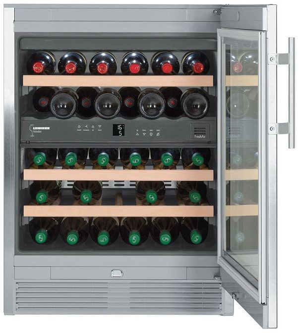Внутри холодильника находятся три полки на телескопических направляющих, выполненные из дерева. Это не только придает устройству элегантный вид, но и обеспечивает надежное хранение бутылок. Устройство также оснащено эргономичной ручкой из нержавеющей сталь, ЖК-дисплеем и цифровым термометром для удобства использования и контроля за температурой.