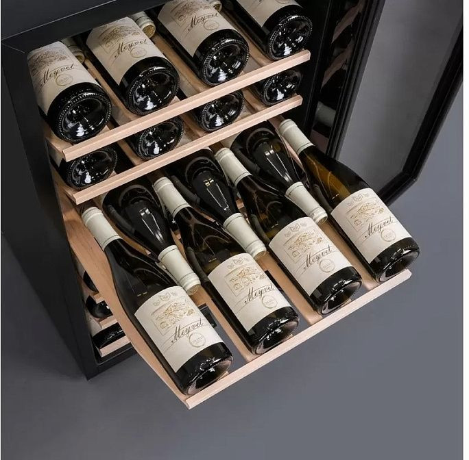 - Монотемпературный режим и вместительность до 52 бутылок.