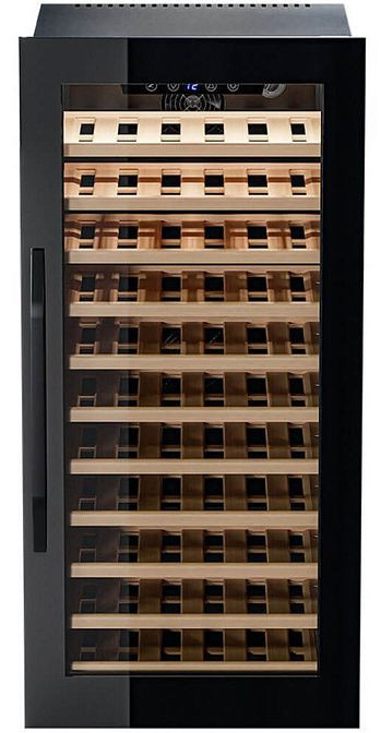 Этот винный холодильник может быть встроен в любую кухню или бар, благодаря его компактным размерам (123x59,2x55,5 см). Он обладает прозрачной дверью, что позволяет вам легко увидеть, что находится внутри, а также добавляет элегантности в общий дизайн.