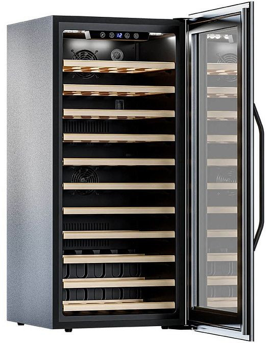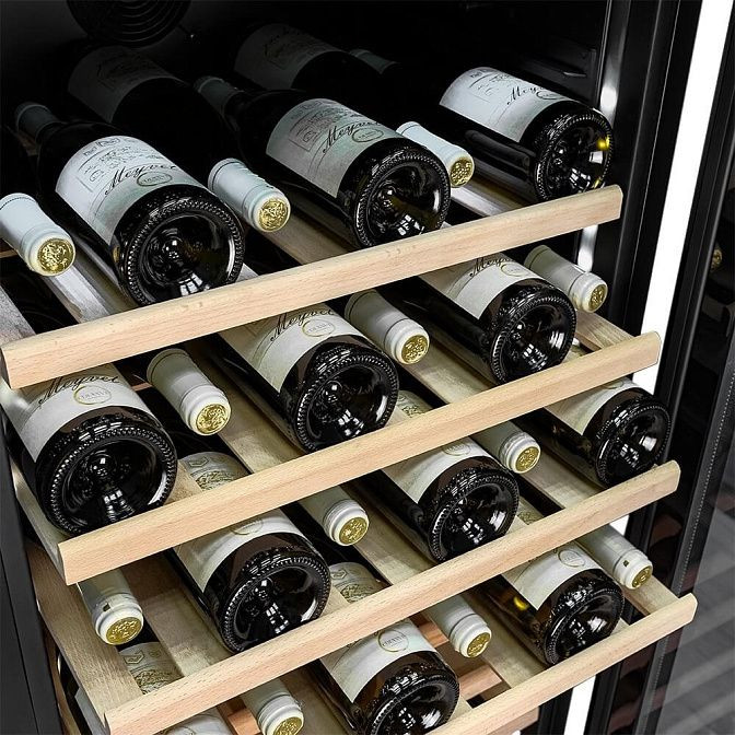 - Высокая вместимость: возможность хранить до 66 бутылок вина.