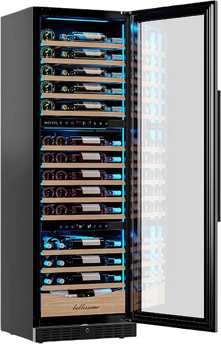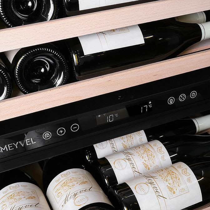 Винный холодильник Meyvel MV98-KBT3 Slim сочетает в себе элегантный дизайн, функциональность и надежность, что делает его незаменимым помощником в поддержании идеальных условий для хранения вина.