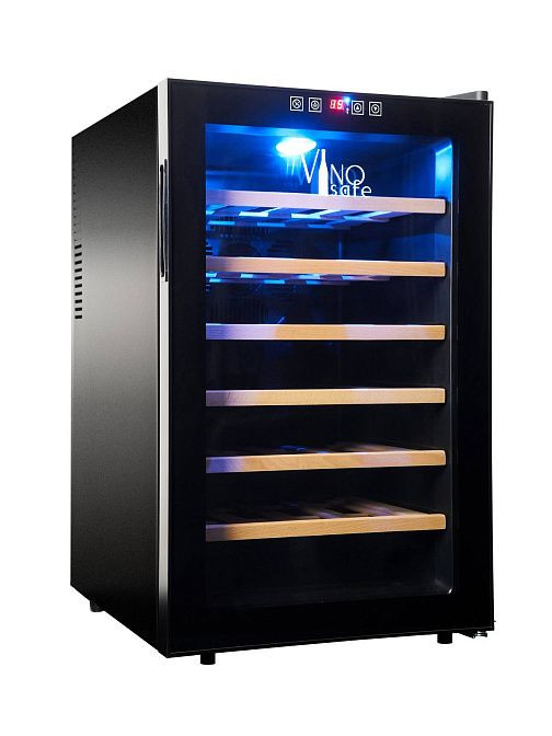 Винный холодильник Vinosafe VSF28AM использует компрессорное охлаждение и хладагент R600A, что обеспечивает высокую эффективность и надежность работы устройства. Вместимость холодильника составляет 28 бутылок, что позволяет хранить достаточное количество вина для любых нужд.
