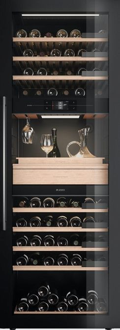 Элегантный и функциональный прибор сочетает премиальную эстетику Pure с продуманной эргономикой для хранения и демонстрации коллекции бутылок. Передняя панель выполнена из металла с прозрачной дверью в стальной рамке, а боковые стенки — из окрашенной стали, что гарантирует долговечность и аккуратный внешний вид в любом интерьере. Прозрачное стекло с защитой от ультрафиолета сохраняет органолептические свойства напитков, минимизируя влияние света, а внутренняя RGB-подсветка обеспечивает мягкое акцентое освещение с возможностью плавной регулировки яркости. Черная отделка полок и элементов создает контрастную, стильную композицию, пригодную для встраивания под столешницу или установки отдельно благодаря жесткому креплению двери и возможности перенавешивания створки вправо.