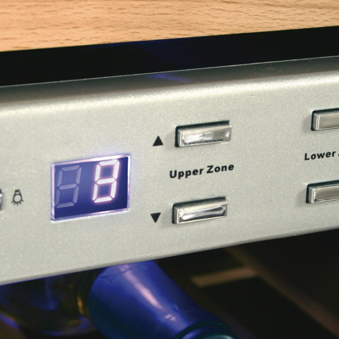 - Две температурные зоны с диапазоном от +5 до +20 °C позволяют одновременно хранить различные напитки в оптимальных условиях.