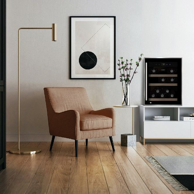 Элегантный черный корпус в сочетании с прозрачной дверцей делает корпус компактным и лаконичным, подчеркивая современную эстетику интерьера. Задействовано закаленное стекло с защитой от УФ-лучей, которое предохраняет напитки от вредного ультрафиолета и демонстрирует содержимое, не нарушая микроклимат. Боковые стенки выполнены из стали, а рукояти — из надежного металлического профиля окрашенного в темный тон, что усиливает визуальную монолитность и устойчивость к внешним воздействиям. Дверь открывается вправо и оснащена сенсорным механизмом, обеспечивающим мягкое и точное взаимодействие при каждом доступе. Встроенная конструкция рассчитана на монтаж в нишу с параметрами 605x590x820 мм, поэтому прибор удобно интегрируется в кухонный гарнитур или барную мебель, экономя площадь и создавая аккуратную композицию в зоне приготовления напитков. Габариты аппарата 515x395x510 мм позволяют разместить устройство даже в компактных помещениях, не жертвуя функциональностью.