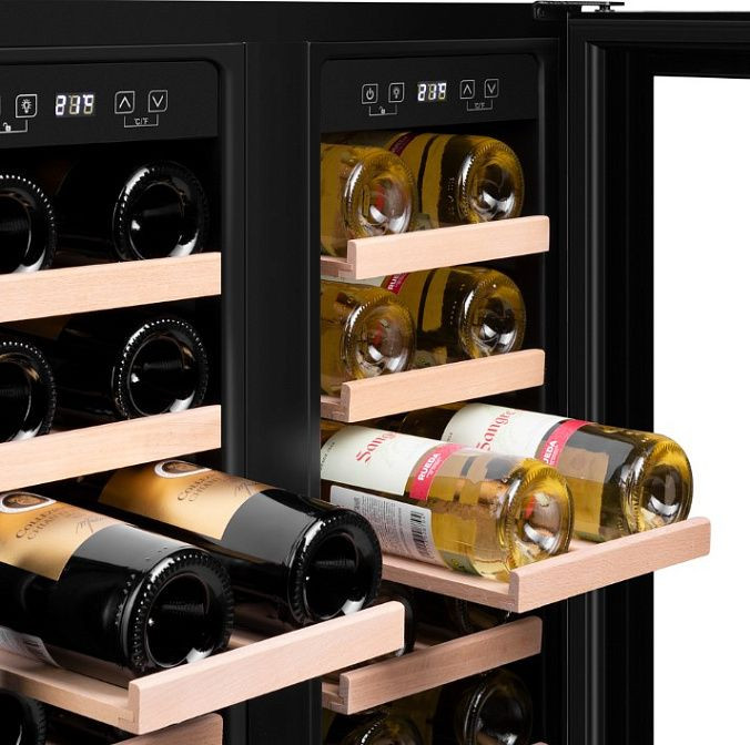 В исполнении предусмотрены удобные элементы: внутренняя вентиляция для равномерного охлаждения, дверное стекло с УФ_защитой для защиты от солнечных лучей, возможность точной настройки микроклимата в каждой камере, а также разнообразные полочные конфигурации для хранения бутылок разного объема. Внешний дизайн выдержан в современном стиле и легко вписывается в разнообразные решения: от минималистичных кухонь до классических винных уголков, подчеркивая коллекционную ценность содержимого и создавая профессиональную среду хранения в домашней обстановке.