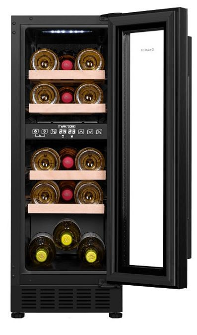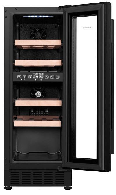 - Две независимые температурные зоны с точным цифровым управлением обеспечивают оптимальные условия для разных сортов вин.