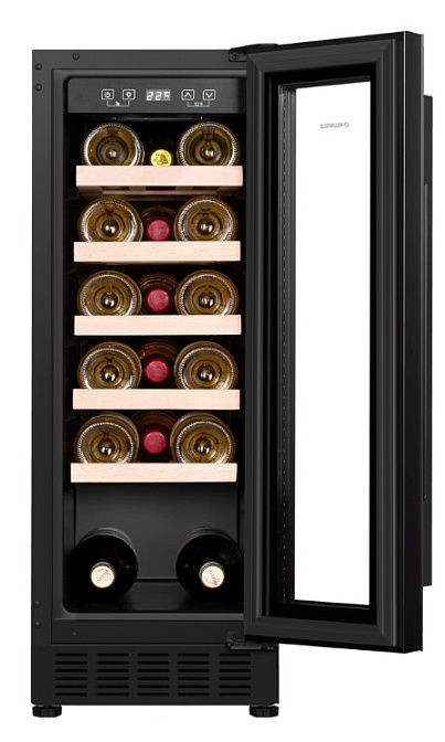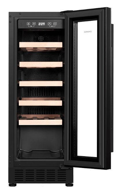 Ключевые преимущества- Компактный встраиваемый корпус из нержавеющей стали с черной фронтальной панелью и УФ-защитой стекла обеспечивает надежную защиту вина и стильный внешний вид.