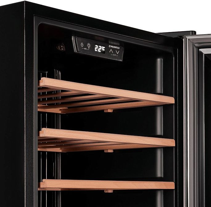 Основная функция винного шкафа — это обеспечение оптимальных условий для хранения вина. Модель MFWC-85SB34 оснащена компрессорным типом охлаждения и способна поддерживать температуру от +5 до + 22 градусов Цельсия в двух температурных режимах. Встроенный вентилятор обеспечивает равномерное распределение температуры по всему объему шкафа, а независимая регулировка температуры в камерах позволяет хранить разные сорта вина в одном шкафу.