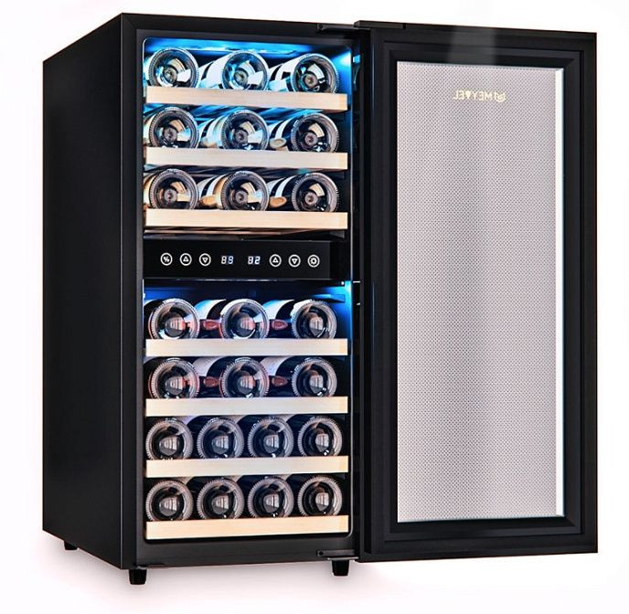 Элегантный прибор в черном корпусе сочетает компактность и функциональность, предлагая аккуратный внешний вид и продуманную внутреннюю организацию. Прозрачная стеклянная дверь с двойным слоем и защитой от УФ-лучей демонстрирует коллекцию, сохраняя внешний стиль и минимизируя воздействие солнечного излучения. Металлические боковые стенки обеспечивают надежную опору конструктиву, а хромированная полка для бутылок и бежевые деревянные полки добавляют интерьеру теплоты и благородства. Модель выполнена как отдельностоящая, но предусматривает вариант встраивания, что дает свободу расположения в кухне или гостевой зоне без ущерба для дизайна.