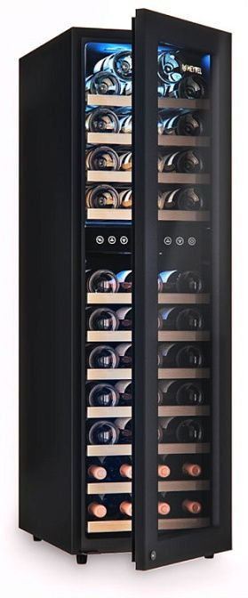 - Две независимые температурные зоны с цифровым дисплеем и точной сенсорной регулировкой для идеального хранения разных сортов.
