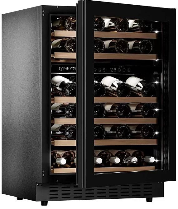 - Точная двухзонная система поддерживает оптимальные температуры для разных сортов вина и обеспечивает стабильность хранения.
