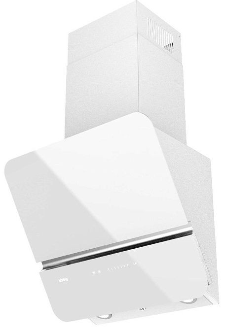 Наклонная настенная конструкция выполнена в современном стиле и сочетает металл и стекло, при этом корпус окрашен в белый цвет с эффектной окантовкой из черного стекла, что создает выразительный контраст и делает прибор заметным элементом кухонного интерьера. Продуманная форма обеспечивает удобство монтажа и комфорт при эксплуатации: наклонная панель освобождает рабочую зону и улучшает доступ к варочной поверхности. Габариты 176,9x54x54,5 см позволяют интегрировать модель в разные планировки, а упаковочные размеры 57x68x48 см облегчают транспортировку и хранение перед установкой.