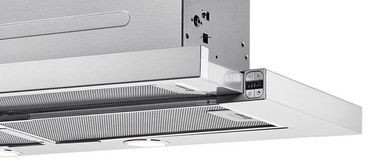 Элегантная подвесная модель встраивается в кухонный шкаф, сочетая минимализм и практичность нержавеющей стали с серебристой отделкой. Компактная высота от 33,9 до 39,6 см и ширина 89,8 см делают прибор удобным для установки над рабочей зоной, а выдвижная стеклянная панель и телескопический экран увеличивают площадь аспирации при необходимости, сохраняя аккуратный внешний вид в убранном состоянии. Серийная панель из нержавеющей стали идет в комплекте и легко заменяется при монтаже или обслуживании; при весе 8,3 кг конструкция остаётся достаточно легкой для монтажа, а габариты встраивания 49x26 см помогают корректно спланировать шкаф.