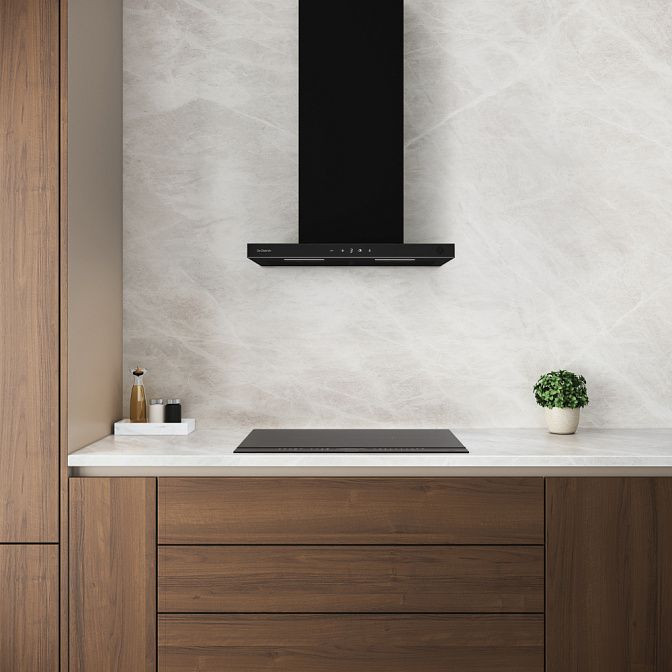Вытяжка De Dietrich DHB4674B — это воплощение стиля и функциональности, созданное для современной кухни. Эта модель впечатляет своим строгим и элегантным дизайном, который подчеркивается черным цветом и безрамочной обработкой края. Материалы корпуса — нержавеющая сталь и стекло, что придает ей не только привлекательный внешний вид, но и обеспечивает долговечность и удобство в уходе.