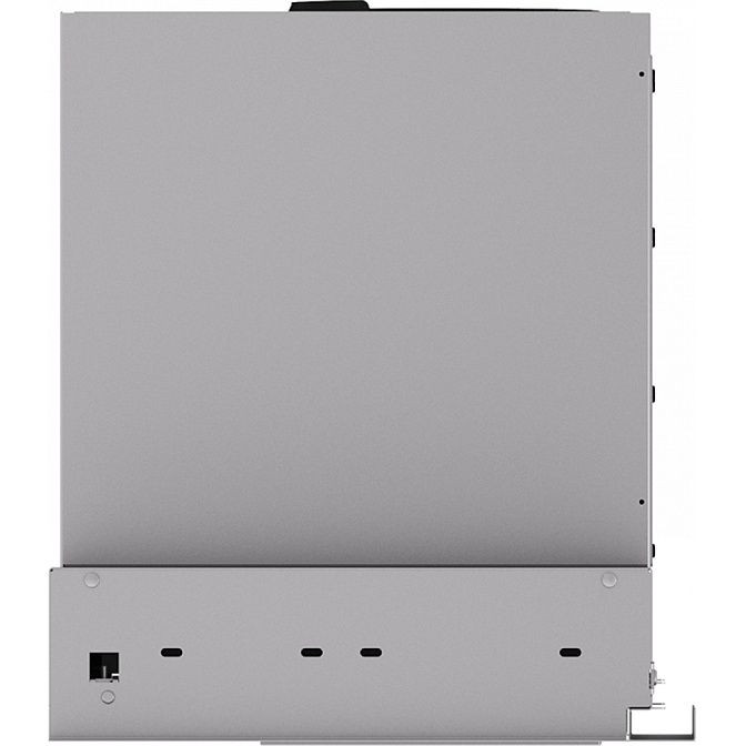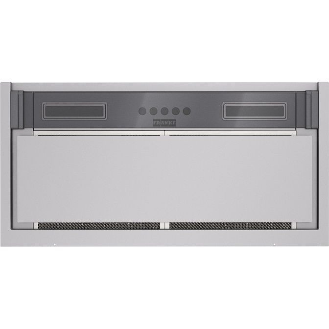 Управление реализовано в электронно-механическом формате: на панели присутствует дисплей и таймер, позволяющие задать время работы и видеть текущую выбранную мощность; отдельный индикатор режима показывает способ функционирования — отвод или циркуляция. Присутствует также индикатор загрязнения фильтра, который вовремя сигнализирует о необходимости очистки алюминиевого жирового элемента, обеспечивающего защиту внутренней части от жирных отложений. В комплект входит один жировой фильтр, антивозвратный клапан и комплект крепежа, что позволяет начать эксплуатацию сразу после установки.