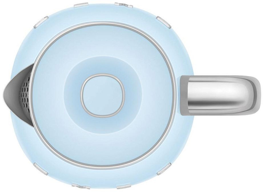 Электрочайник выполнен в мягком пастельно-голубом цвете и выдержан в стиле 50-х годов, что делает прибор выразительным акцентом на кухонной поверхности. Пластиковый корпус с хромированной отделкой и полированной стальной вставкой носика придает изделию ретро-шарм, при этом сохраняется практичность современных технологий: закрытый нагревательный элемент обеспечивает быстрый нагрев и упрощает уход, а съемный фильтр от накипи из нержавеющей стали удерживает осадок и продлевает срок службы. Ёмкость 0,8 л рассчитана на примерно три чашки, что удобно для небольших семей или офисных перерывов, а прозрачная шкала уровня воды позволяет контролировать объем, не открывая крышку.