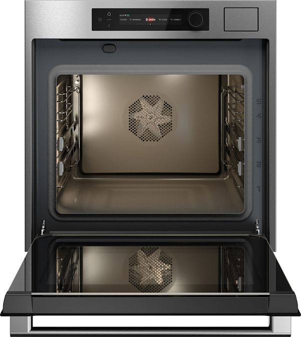 Элегантный корпус в сочетании серебристого и черного цвета формирует строгий и современный образ, который органично впишется в любую кухонную композицию. Внешняя панель объединяет TFT дисплей с сенсорными элементами и поворотными переключателями, создавая удобную и наглядную панель управления, где отображается текущая температура, выбранный режим и время до отключения. Откидная дверь с четырьмя слоями стекла легко снимается для обслуживания, а внутренняя камера объемом 71 литр предоставляет простор для больших противней и композиционных блюд. Эмалевое покрытие облегченной очистки совместно с гидролизной программой значительно упрощают уход: достаточно залить немного воды и запустить специальный режим для размягчения загрязнений.