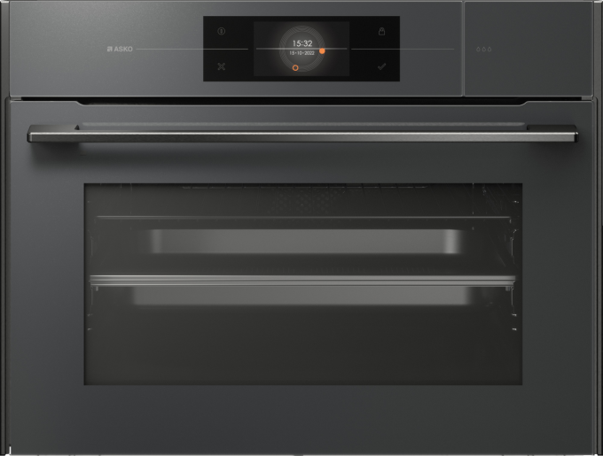Панель управления представлена сенсорными переключателями: интуитивные касания и яркая индикация режима на TFT дисплее упрощают выбор параметров, таймера и автоматических программ. Модель поддерживает 11 основных способов нагрева, включая верхний и нижний элементы, комбинированный режим с вентилятором, классическую конвекцию, несколько вариантов гриля и расширенные варианты работы с паром: шесть режимов для точного контроля влажности, быстрый разогрев и ECO-режим. Кроме того доступно 132 автоматические программы и функция AutoRoast для автоматического запекания, а также режим SousVide для деликатного приготовления под вакуумом.