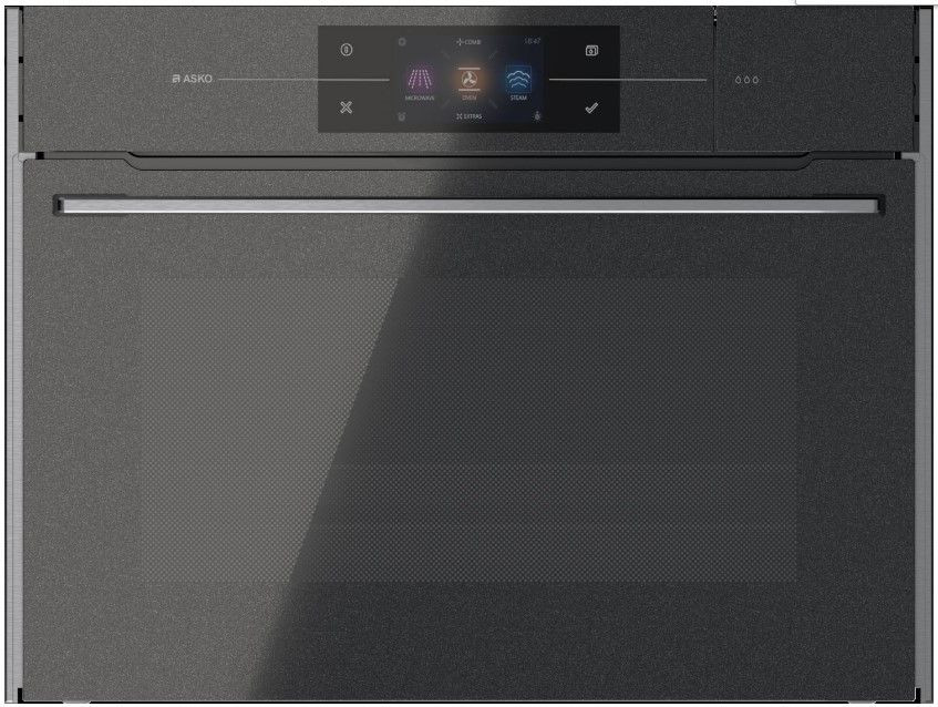 Компактный духовой шкаф ASKO OCSM8478G сочетает лаконичный черный корпус с бронзовой фурнитурой и стеклянной отделкой ручки, создавая элегантный акцент для любой кухни. Корпус рассчитан на встраивание шириной 56 см и идеально вписывается в нишу 450x560x550 мм; габариты прибора — 455x595x546 мм, вес в упаковке 42,1 кг. Панель управления электронная с TFT-дисплеем и утапливаемыми поворотными регуляторами, сенсорные переключатели и подсветка символов обеспечивают интуитивную навигацию по параметрам, а звуковой таймер с отключением и функция памяти упрощают многозадачность во время готовки. Благодаря холодной двери из трех стекол с возможностью снятия внутреннего стекла и доводчику открывание производится плавно и безопасно, а блокировка от детей и автоматическое отключение при открытой дверце повышают уровень защиты.
