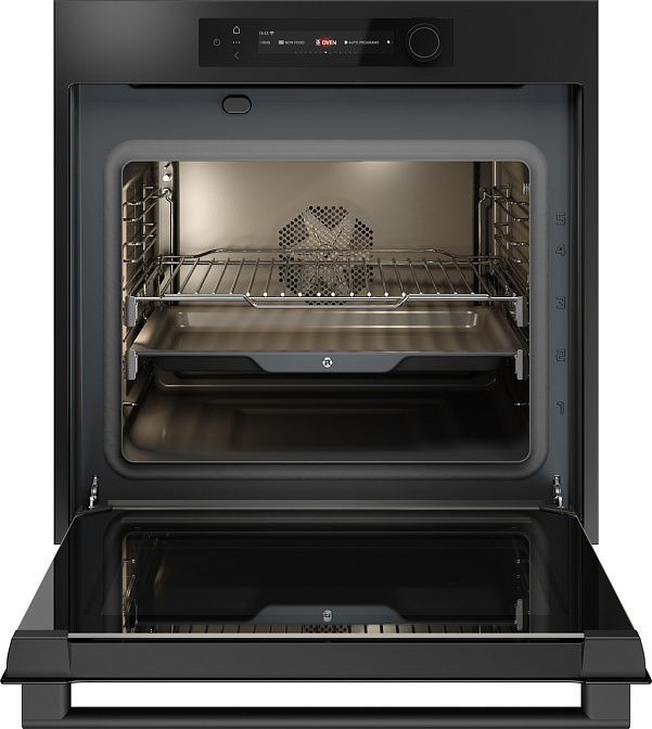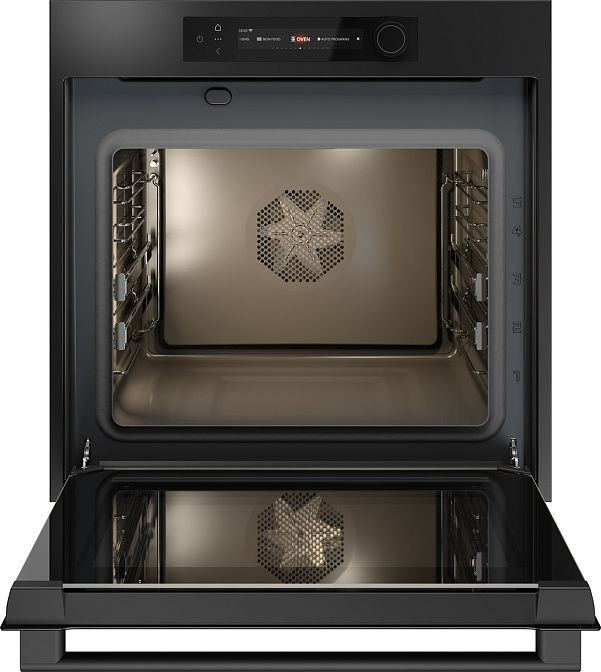 Духовой шкаф ASKO OT66GSH — элегантное сочетание строгой геометрии и глубокого графитового оттенка, которое органично впишется в современную кухонную обстановку. Лицевая панель выполнена с акцентом на удобство: TFT-дисплей аккуратно размещен между поворотными ручками и сенсорными элементами, что обеспечивает быстрый доступ к настройкам без лишних движений. Матовая поверхность фасада снижает видимость отпечатков, а продуманная откидная дверь с тремя слоями стекла сохраняет тепло внутри камеры и гарантирует безопасное использование. Трехслойное остекление и съемная конструкция дверцы упрощают уход, а внутреннее пространство, оформленное эмалью легкой очистки, позволяет поддерживать чистоту без агрессивных средств. Подсветка камеры делает контроль за процессом выпекания комфортным и информативным в любое время суток.