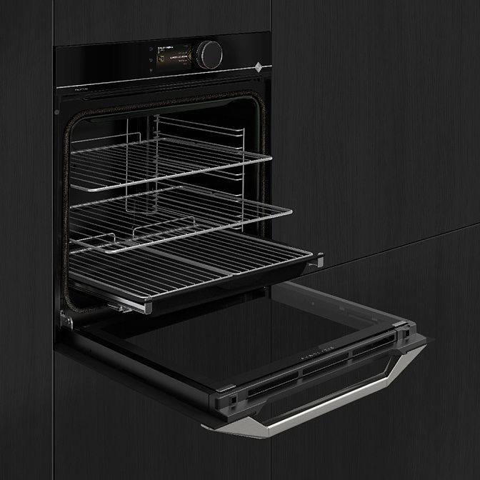 Управление шкафом осуществляется электронно, с помощью сенсорных и поворотных переключателей, расположенных спереди. Это обеспечивает удобство и простоту использования. Дисплей показывает режим работы и температуру нагрева, помогая вам контролировать процесс приготовления.