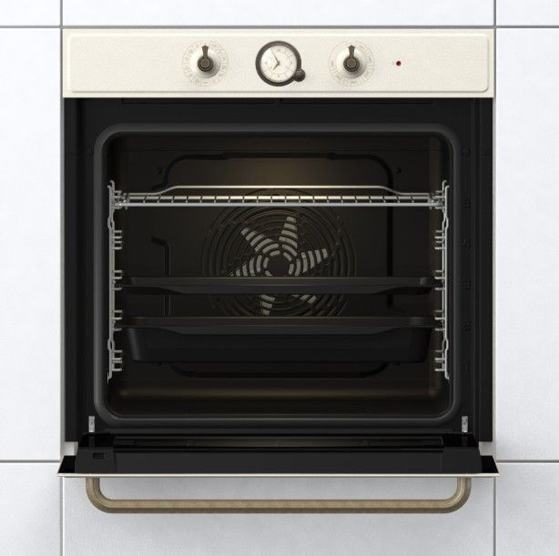 Эта модель объединяет в себе ретро эстетику и современные технологии, предлагая выразительный образ в цвете слоновая кость с бронзовой ручкой и отделкой, которая органично впишется в интерьер в духе 50-х, не теряя при этом актуальности. Фронтальная панель выполнена из крашеного металла, элементы управления — поворотные утапливаемые переключатели и сенсорные кнопки, а LED дисплей аккуратно информирует о выбранном режиме и времени. Холодная дверца с съёмным стеклопакетом и мягким закрыванием обеспечивает безопасность и удобство при эксплуатации, а встроенные часы и программатор добавляют комфорта при планировании приготовления.