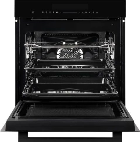 Элегантный фронт из закаленного стекла в черном исполнении придает прибору современный и строгий облик, который легко впишется в интерьер любой кухни. Компактный, но вместительный объем камеры 72 л обеспечивает простор для крупных форм и нескольких уровней выпечки: до пяти уровней приготовления с удобным размещением противней на хромированных направляющих. Ручка дверцы выполнена в бронзовом оттенке, а стеклянная фронтальная поверхность сохраняет стиль и удобна в уходе; внутренняя поверхность покрыта эмалью легкой очистки CrystalClean, что сокращает время обслуживания.